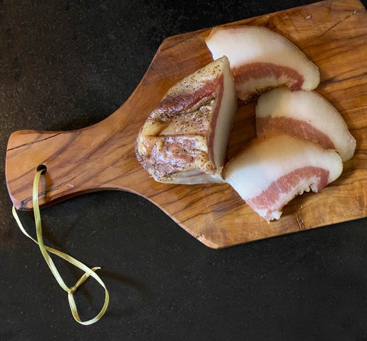 Pancetta or rigatino: several Tuscan recipes relating to pork meat preparation, like the typical “Tuscan Rigatino” date back to the Etruscan civilization. Pork was the most common meat and when the animals were two years old they were processed to make hams and sausages.