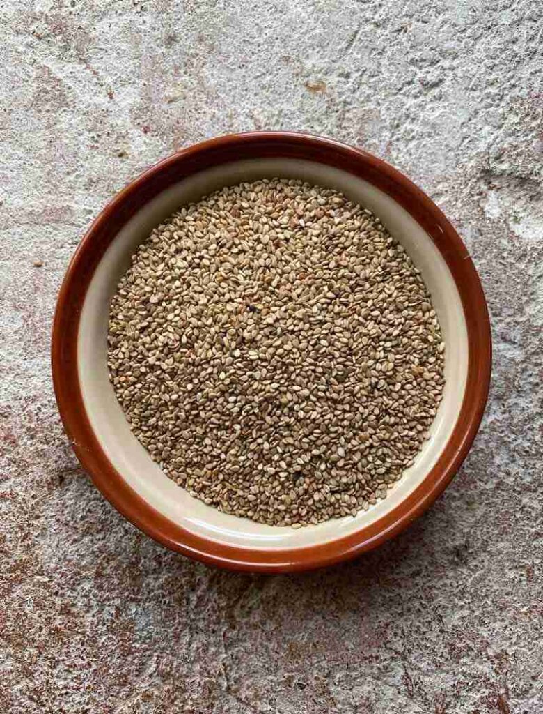 - Toasted Sesame Seeds: 100 grams Toasted Sesame Seeds for the Tahini, or 1 Tablespoon of ready-made Tahini
