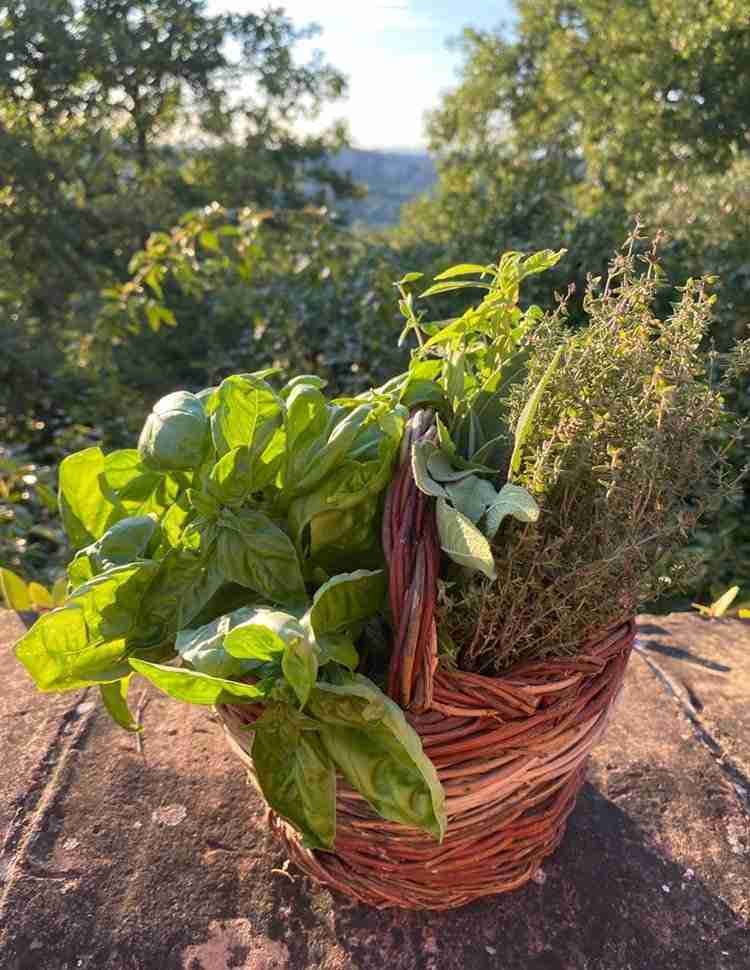 - 1 bunch of each: basil, fresh oregano, lemon balm, fresh thyme