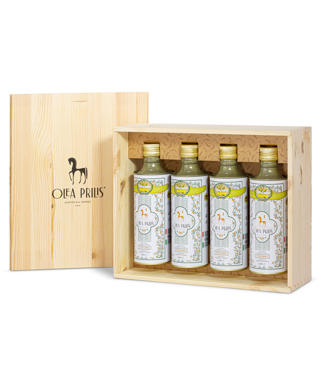 A fresh fruity EVOO that expresses all the excellent nutritional virtues of the fruit of the Tuscan olive trees.